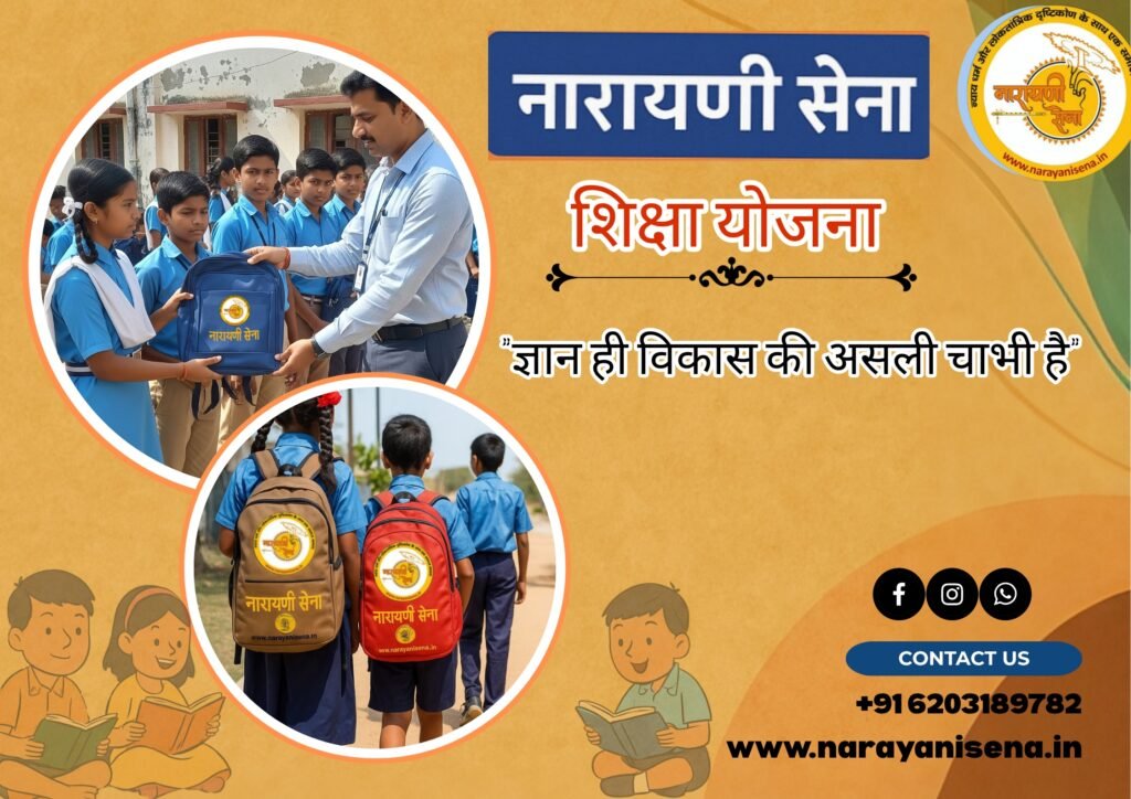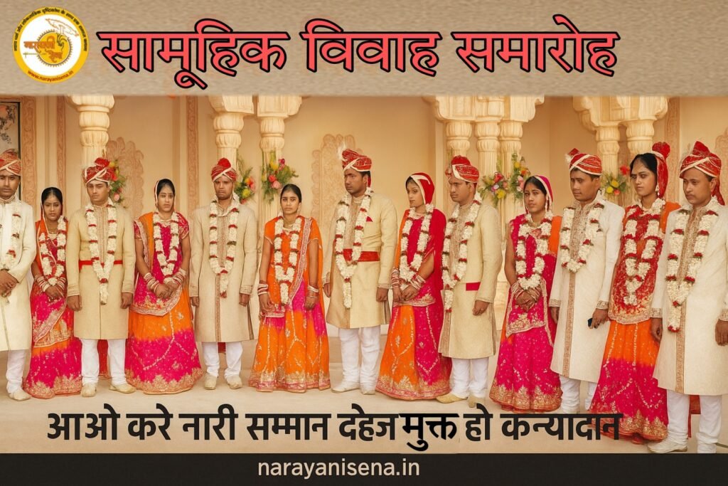 नारायणी सेना एक सामाजिक संगठन है जो गरीब, निर्धन और आर्थिक रूप से पिछड़े परिवारों की बेटियों के लिए सामूहिक विवाह समारोह का आयोजन करता है। इस नेक कार्य का उद्देश्य उन परिवारों की मदद करना है जो आर्थिक तंगी के कारण अपनी बेटियों की शादी नहीं कर पाते।